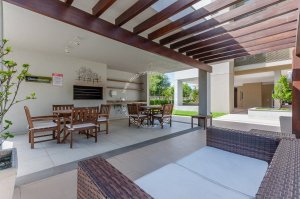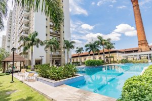 Condomínio com portaria 24 horas, segurança, salão de festas, fitness, lavanderia, playground, sala de jogos, piscina adulto e infantil, quadra de esportes.