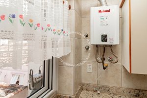 Na parte inferior cozinha, living, lavabo e suíte com amplo closet (originalmente era o 2º dormitório).